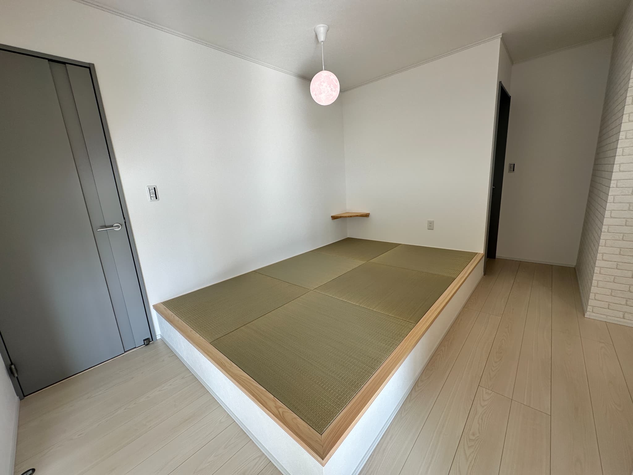 入口をアーチ型にして、正面にはマグネット内蔵の壁紙を使用していろいろ貼れるようにしてもらいました。壁紙の柄もすごく可愛くて気に入っています。