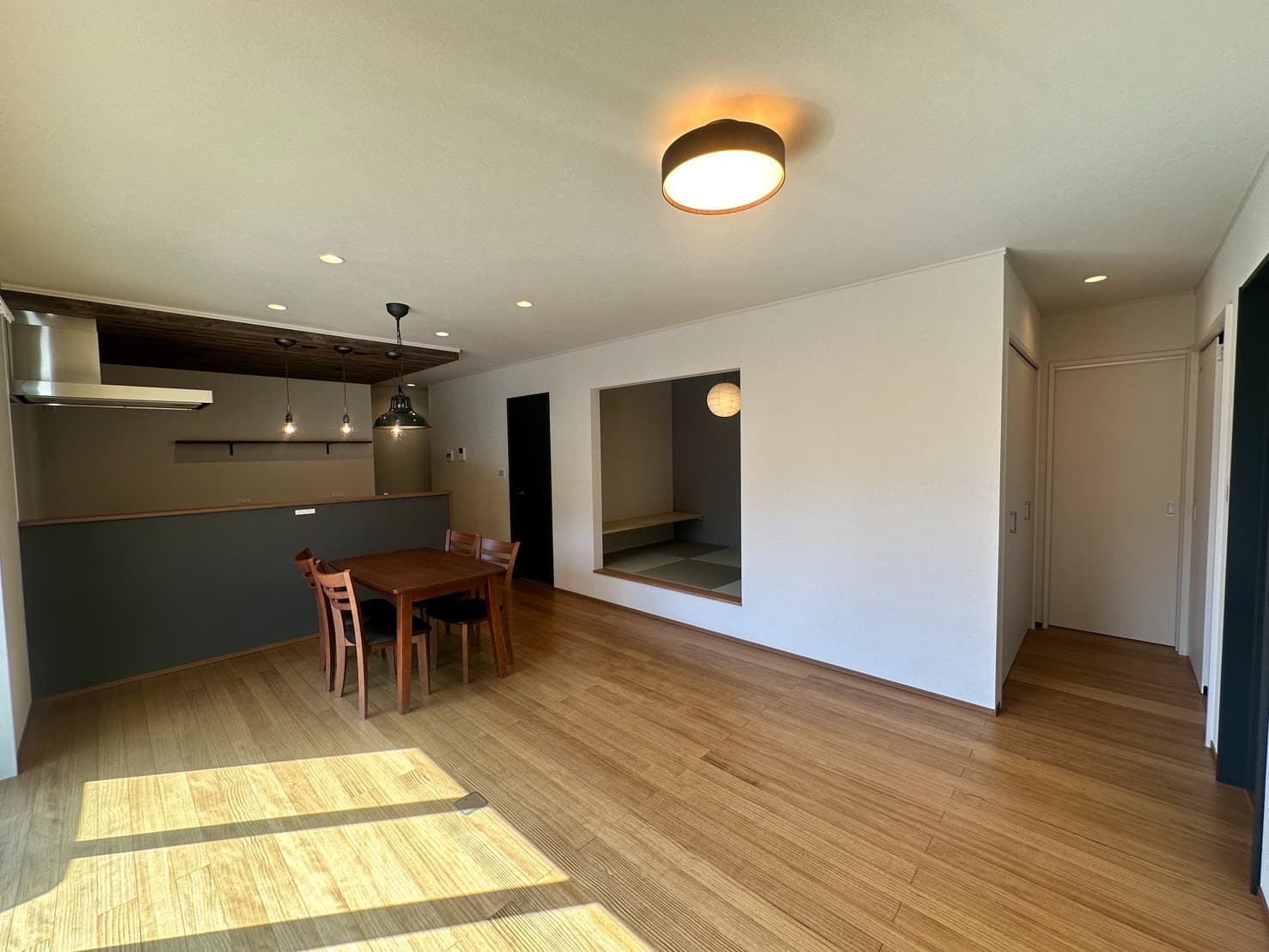 奥様:全部です(笑)強いて言うと、くつろいだり、書き物をしたりできるように小上がりの畳スペースと造作のカウンターも造ってもらいました。キッチンの折下天井もアクセントになっていてお気に入りです。